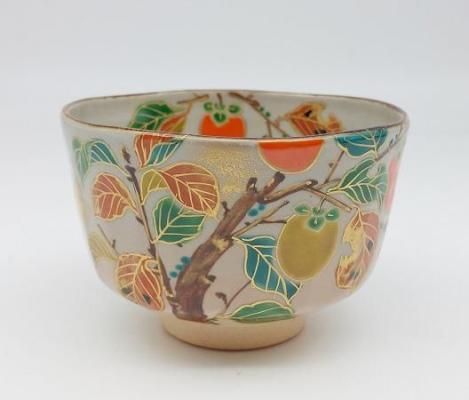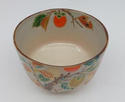 ▼ 茶道具 抹茶茶碗 乾山 柿の絵、壱休窯 窪田常之作 25-10